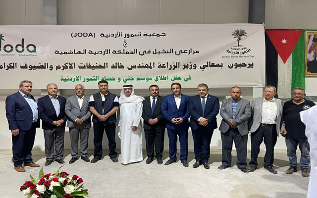 نظمت جمعية التمور الأردنية، الخميس 15 شتنبر2022، حفل إطلاق يوم جني وحصاد التمور الأردنية برعاية وزير الزراعة المهندس خالد الحنيفات وبحضور سفير دولة الإمارات المتحدة أحمد البلوشي وأمين عام جائزة خليفة لنخيل التمر والابتكار الزراعي الدكتور عبد الوهاب زايد والمهندس نبيل عساف مدير مكتب الفاو في عمان ورئيس اتحاد المزارعين وادي الأردن وعطوفة مدير عام المركز الجغرافي الملكي ومتصرف لواء الشونة الجنوبية ومدير عام المركز الجغرافي الملكي ومدير عام المؤسسة التعاونية ومدير عام الشركة الاردنية الفلسطينية لتسويق الخضار ...