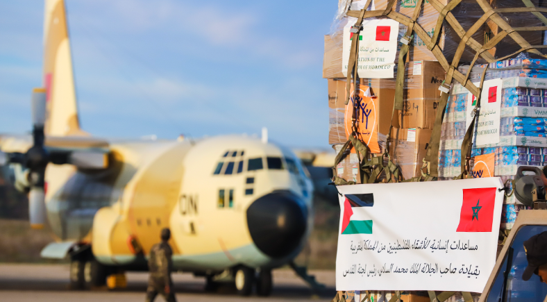 حطت، يوم الأربعاء 25 اكتوبر 2023 بمطار العريش (شرق جمهورية مصر)، طائرتان عسكريتان مغربيتان محملتان بمساعدات إنسانية عاجلة لفائدة الفلسطينيين. وتأتي هذه الالتفاتة الإنسانية تنفيذا لتعليمات الملك محمد السادس رئيس لجنة القدس من أجل إرسال مساعدة إنسانية عاجلة للفلسطينيين. ونقلت هاتين الطائرتين، اللتان سيتم إدخال حمولتهما إلى قطاع غزة عبر معبر رفح الحدودي البري، كميات مهمة من المواد الغذائية والمستلزمات الطبية والمياه. وأشرف على عملية استقبال هاته المساعدات بمطار العريش، سفير المملكة بالقاهرة ومندوبها الدائم ...
