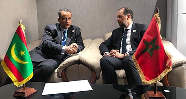 أجرى الوزير المنتدب المكلف بالتعاون الإفريقي، محسن الجزولي، اليوم الخميس 04 يوليوز2019، بنيامي، مباحثات مع وزير الشؤون الخارجية الموريتاني، إسماعيل ولد الشيخ أحمد، الذي سلم له رسالة خطية من الرئيس الموريتاني محمد ولد عبد العزيز إلى الملك محمد السادس. وجرى هذا اللقاء على هامش أشغال الدورة العادية الـ 35 للمجلس التنفيذي للاتحاد الإفريقي التي تنعقد، حاليا، في العاصمة النيجرية. وخلال هذه المباحثات، نوه المسؤولان بجودة العلاقات التي تجمع المغرب بموريتانيا. ...