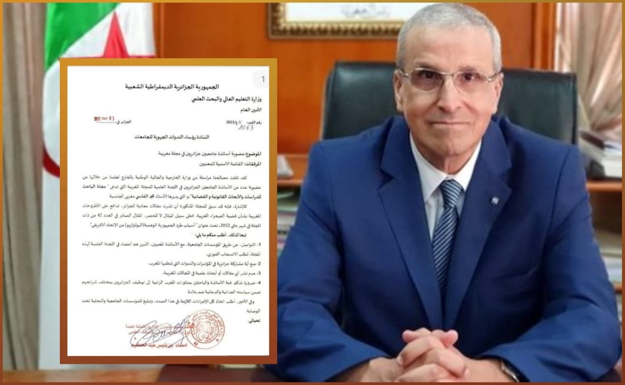 وستعود جريدة "الوطن الآن" في عددها المقبل لتداعيات هذا السلوك الجزائري في فرض الوصاية والحجرعلى أساتذتها الجامعيين، بعد أن ارتكز بلاغ وزارة التعليم العالي في قصر المرادية على أن المجلة المغربية نشرت مقالات تدافع عن الطرح المغربي بشأن قضية الصحراء المغربية وآخرها مقال نشر في ماي 2022 تحت عنوان: " أسباب طرد الجمهورية الوهمية (البوليساريو) من الاتحاد الإفريقي".