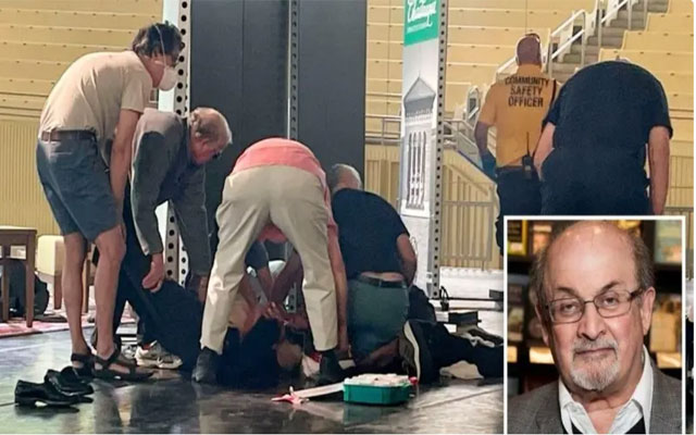 ونقل سلمان رشدي عبر طائرة مروحية لتلقي العلاج بعد تعرضه للاعتداء.