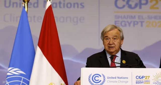 عبر الأمين العام للأمم المتحدة أنطونيو غوتيريس، عن الأسف لكون مؤتمر الأطراف حول المناخ "كوب 27" المنعقد بشرم الشيخ فشل في وضع خطة لخفض الانبعاثات بشكل جذري.