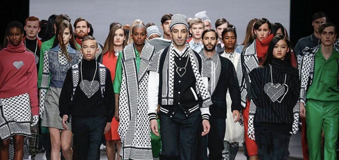 أطلق المصمم المغربي عزيز البقاوي مجموعته الجديدة تتكون من العديد من الملابس المستوحاة من الكوفية الفلسطينية.
