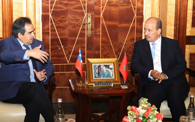 وبهذه المناسبة أجرى الطرفان محادثات هامة تناولت واقع علاقات الصداقة والتعاون القائمة بين المغرب، والشيلي وضرورة رفع وثيرة التعاون البرلماني من أجل الارتقاء بها في مختلف المستويات خاصة من الناحية الاقتصادية والتجارية التي لا تزال دون طموحات البلدين والشعبين الصديقين.