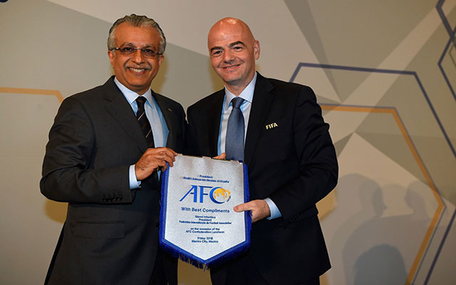 رئيس الاتحاد الدولي لكرة القدم جياني انفانتينو ورئيس الاتحاد الآسيوي الشيخ سلمان بن إبراهيم آل خليفة