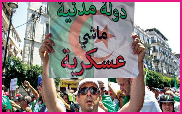 أكاديمي جزائري: "دولة عصابة العسكر" أصبحت أكثر ديكتاتورية من ذي قبل الحراك الجزائري رفع شعار "دولة مدنية مشي عسكرية"