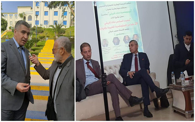 احتضنت قاعة الندوات بالمدرسة الوطنية للتجارة والتسيير بسطات ندوة علمية وطنية بعنوان "ديبلوماسية ملك إفريقي"، وذلك يوم الأربعاء 22 فبراير 2023. وكانت الندوة بمناسبة توقيع للكاتب والصحافي، سمير شوقي مؤلفه الذي أصدره مؤخراً بعنوان "محمد السادس ملك إفريقي، 20 عاما من الديبلوماسية المغربية بإفريقيا ، هذاوقد اشرف على هذه الندوة كل من محمد كريم بوخصاص، دكتور في الإعلام وصحافي، والدكتور أمين السعيد، أستاذ التعليم العالي بكلية العلوم القانونية والاقتصادية والاجتماعية بفاس؛ والأستاذ المصطفى الدحماني، محام بهيأة سطات ومستشار برلماني الذي أدلى" ل" أنفاس بريس" التي واكبت الندوة بالتصريح التالي: