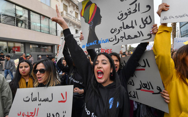 وهتف المتظاهرون ومن بينهم فنانون ونشطاء، "تسقط الفاشية تونس أرض إفريقية" و"التضامن مع المهاجرين غير النظاميين" و"يا رئيس العار قدّم الاعتذار".