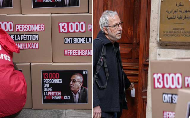 وذكر بيان للمنظمة التي تُعنى بحرية الصحافة والتعبير عبر العالم، أنها “وضعت 13000 مغلفًا يرمز إلى التواقيع على عريضة: الحرية لإحسان القاضي، أمام السفارة الجزائرية في باريس للمطالبة بالإفراج الفوري عن الصحافي.