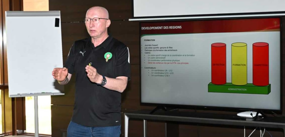 وتميز هذا الاجتماع، الذي عقد بمركب محمد السادس لكرة القدم، بمشاركة 10 أقطاب تابعة للإدارة التقنية ويتعلق الأمر بكل من: