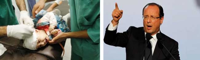 في وقت يتابع فيه العالم كل أنواع التقتيل والدمار التي تمارس على الشعب الفلسطيني، وقذائف المدفعيات الإسرائيلية التي لا تميز بين طفل وامرأة وشيخ. أبى الرئيس الفرنسي فرانسوا هولاند إلا أن يخرج عنه صمته ويعبر عن تأثر قلبه المتحسر. لكن وللأسف، ليس حيال النيران التي تحرق الشعب الفلسطيني، ولكن تجاه ما علق عليه بهجمات حركة حماس على الدولة العبرية، وقصفها لشعب إسرائيلي "مسالم". وبذلك، لم يتردد هذا الرئيس الفرنسي في الاتصال بنظيره الإسرائيلي بنيامين ناتانياهو من أجل تأكيد جبر خاطره من خلال إدانة، حسب تعبيره، ما يتسبب فيه الفسلطينيون من "تخويف وترهيب" للإسرائيليين. وبالتالي، إعلان دعمه الكامل له في"اعتداء" قواته على شعب قطاع غزة، وتضامنه مع كافة الإجراءات التي تتخذها القيادات العسكرية في هذا الصدد. بل الأكثر من ذلك، لم يدع زعيم دولة "الحرية والمساواة والإيخاء" الفرصة تمر دون تشديده عن تفهمه لحق إسرائيل في حماية أمنها، وامتلاكها شرعية استخدام جميع الآليات الممكنة لإبعاد "شبح" التهديدات الفلسطينية.