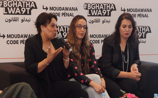 وقد تخللت الصبيحة التحسيسة بالإضافة إلى الكلمة الافتتاحية التي ألقتها الوزيرة السابقة نزهة الصقلي، بصفتها نزهة الصقلي، بصفتها منسقة "مجموعة من أجل تشريعات تضمن المساواة"، وعرض لإبراز النقاط التي خلص لها التقرير المنجز، مقاطع فيديو من تشخيص الممثلات سابقات الذكر، حيث قمن بنقل تجارب واقعية لنساء مغربيات، كن ضحية للاغتصاب أو التزويج المبكر وغيرها من المخاطر التي تهدد المرأة المغربية بسبب النصوص القانونية الواجب إعادة النظر في بنودها، وكذا أغنية راب بعنوان "بغاتها الوقت".