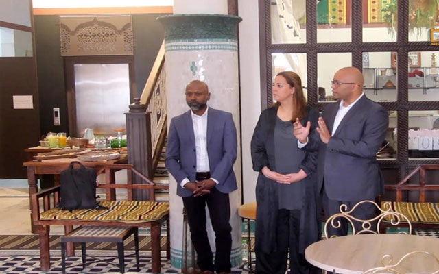 غزلان مغنوج المنجرة رئيسة جمعية ماروك أمباكت تتوسط باحثين في الاقتصاد والابتكار المجتمعي من دولتي الهند والسنغال