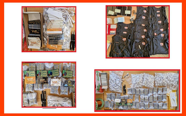 كما أسفرت عملية الضبط والتفتيش المنجزة في إطار هذه القضية عن حجز ثلاثة أقلام مجهزة بشرائح هاتفية و 20 بطارية ، و 17 قطعة ملابس مجهزة بمعدات للاتصال اللاسلكي ، علاوة على سيارة خفيفة ودراجة نارية ومبلغ مالي يشتبه في كونه من متحصلات هذا النشاط الإجرامي .
