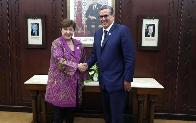 وفيما أعرب رئيس الحكومة عن اعتزاز المغرب باختياره من أجل احتضان لقاء عالمي من مستوى الاجتماعات العامة لمجموعة البنك الدولي وصندوق النقد الدولي، الأمر الذي يكرس الاهتمام الخاص الذي توليه المؤسسات المالية الدولية للمملكة المغربية، ويشكل مناسبة لبسط الأشواط الهامة التي قطعتها بلادنا في مختلف المجالات التنموية تحت قيادة الملك محمد السادس، أكدت المديرة العامة لصندوق النقد الدولي بأن المغرب يعتبر نموذجا يحتذى به في تدبير مرحلة ما بعد جائحة كوفيد 19، بفضل المبادرات الحكومية الموجهة، والمضبوطة زمنيا، مشيرة إلى أن المغرب الذي يتمتع باقتصاد دينامي، أصبح مثالا في مجال البناء الاجتماعي والتنمية.