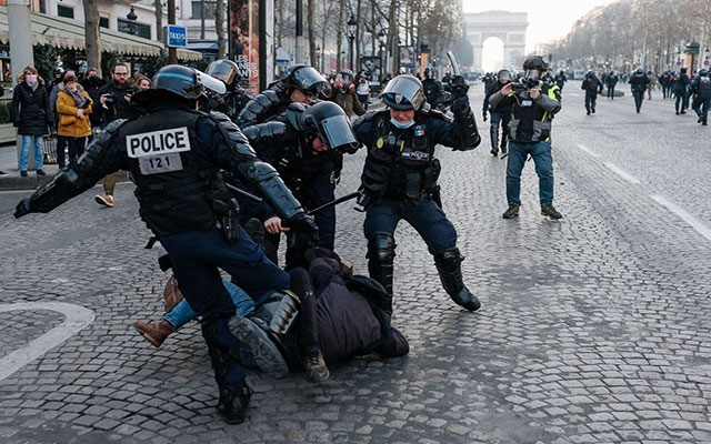 منظمة نقابية دولية: قلق من استفحال العنف البوليسي والاعتقالات العشوائية في فرنسا  من مظاهر العنف الشرطي في فرنسا