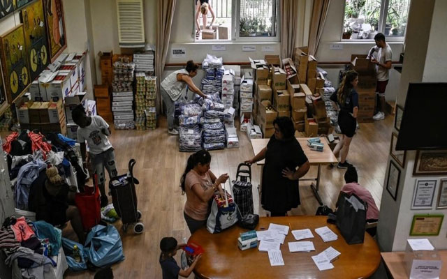آلاف المهاجرين يعانون الجوع في اليونان بعد تخفيض برنامج دعمهم طالبو لجوء يتسلمون مساعدات من مواد غذائية وملابس تقدمها منظمة غير حكومية في أثينا
