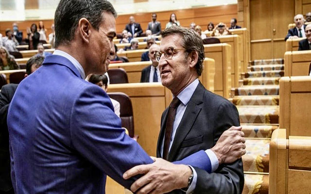 أكدت "أ. بي. سي" الإسبانية أن زعيم الحزب الشعبي، ألبرتو نونييز فييخو إلى بعث رسالة إلى رئيس الحكومة الانتقالية الحالية بيدرو سانشيز، بهدف إضفاء الطابع الرسمي على "اتفاق معتدل" بين الحزبين الكبيرين، وهو ما فسره ملاحظون أن زعيم الحزب الفائز في الانتخابات يطلب إشراكه في الحكم حتى قبل توليه منصب رئيس الحكومة.