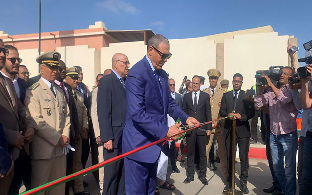 والي جهة العيون - الساقية الحمراء عامل إقليم العيون عبد السلام بكرات وشخصيات اخرى خلال تدشين افتتاح القنطرة