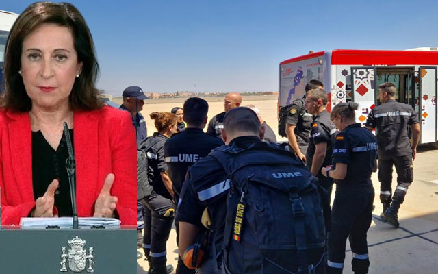 أشادت وزيرة الدفاع الإسبانية، مارغريتا روبليس، بالدعم اللوجستي الذي تقدمه القوات المسلحة الملكية لرجال الإنقاذ الإسبان، حتى يتمكنوا من القيام بمهمتهم في أفضل الظروف، وذلك على إثر الزلزال الذي ضرب، الجمعة الماضية، عددا من أقاليم المملكة.