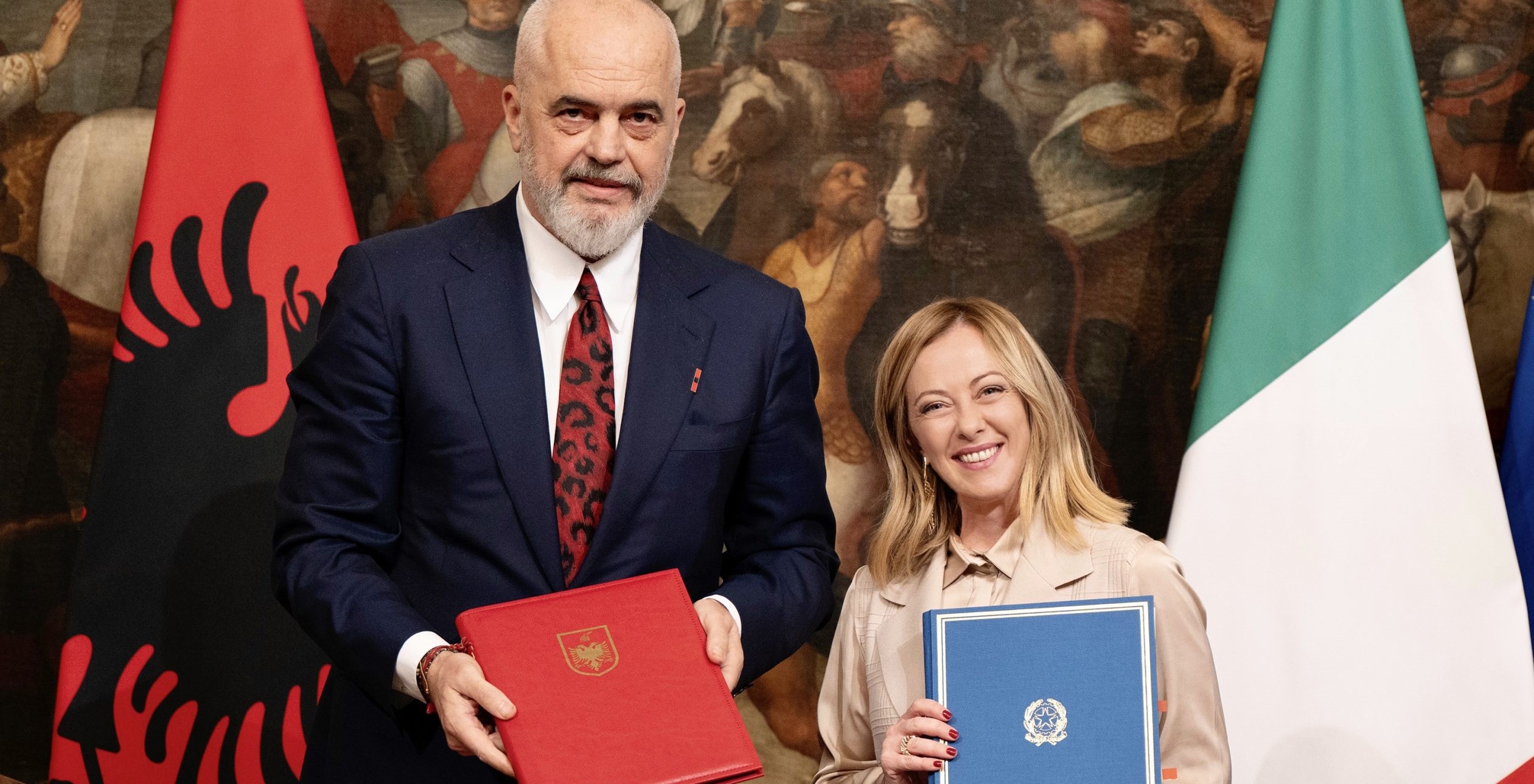 وقعت إيطاليا اتفاقا مع ألبانيا لإيواء آلاف المهاجرين الذين يصلون إلى إيطاليا ريثما تعالج طلبات لجوئهم، إضافة لترحيل المرفوضين منهم، الاتفاق جاء عقب اجتماع بين رئيسة الوزراء الإيطالية جورجيا ميلوني ونظيرها الألباني إيدي راما في روما.
