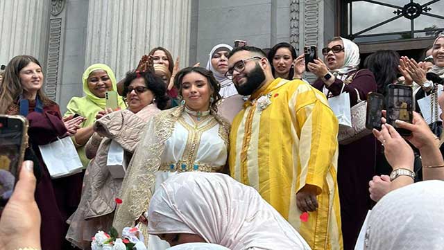 شغلت صورة حمزة تاوزال، عمدة وسط لندن، وهو يرتدي الجلباب المغربي وعروسته القفطان في حفل زفافهما، اهتمام رواد منصات التواصل الاجتماعي.