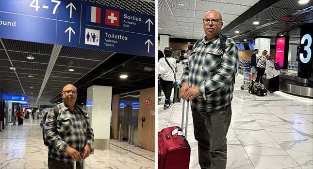 المكان هو مطار بال Bâle السويسري، الذي لايحمل من سويسرا إلا الاسم، بحكم أنه المطار الوحيد في العالم الذي يخضع تدبيره لثلاث دول، وهي: سويسرا، فرنسا وألمانيا، ولهذا فالمطار يحمل اسم المدن الحدودية للدول الثلاث: بال ( المدينة السويسرية) وميلوز ( الفرنسية) ثم فريبوغ ( الألمانية).Aeroport Bâle Mulhouse FRIBOURG.