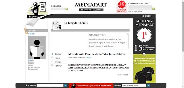 بادرت الجريدة الإلكترونية الفرنسية "ميديابارت" بنشرترجمة نص الرسالة التي خص بها طارق جاخوخ موقع "أنفاس بريس" ابن صاحب شركة جرف الرمال "درابور" المعروضة على أنظار القضاء حاليا والمعتقل بسبب هذه القضية بتهمة الاختلاس وخيانة الأمانة منذ 2 يوليوز 2014. وهي الرسالة التي يشرح فيها حيثيات وملابسات وخبايا ما أسماه بـ "المؤامرة" للاستيلاء على شركة والده من طرف شخص اتهمه باستغلال ثقة والده.