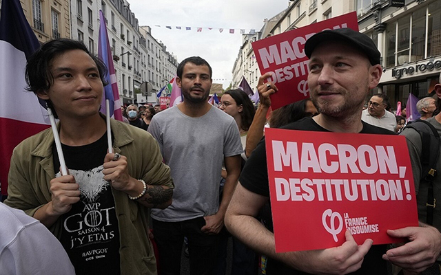 انطلقت في باريس ومدن فرنسية أخرى، السبت 7 شتنبر 2024، مظاهرات تطالب بعزل الرئيس إيمانويل ماكرون، بدعوة من قوى يسارية احتجاجا على تعيين ماكرون للوزير اليميني الأسبق ميشال بارنييه رئيسا للحكومة.