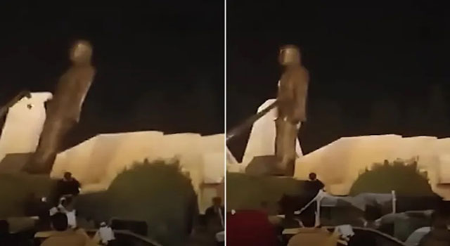 وقال شاهد عيان من دون ذكر اسمه "تجمع عشرات الشبان في ساحة وسط المدينة وأسقطوا التمثال عن قاعدته قبل أن يحطموه".