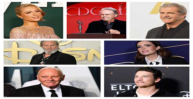 ميل جيبسون ويلي كرستال، وباريس هلتون،والممثل جيف بريجز، والنجمة ماندي مور، والنجم البريطاني أنتوني هوبكنز، والممثل مايلز تيلر