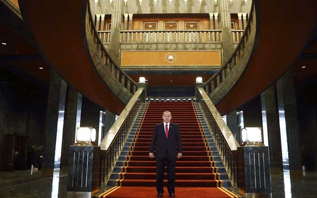واعتمد رئيس الوزراء على شعبيته الجارفة التي اكتسبها بعد 11 عاماً في هذا المنصب وتمكن من زيادة النمو الاقتصادي السنوي بنسبة 5% من سابقيه، وبعد انتخابه رئيساً في أول اقتراع مباشر، وسع من صلاحياته، واعتبر نفسه بلا معارضة لدرجة إسرافه في بناء وتأثيث القصر الجديد من أموال دافعي الضرائب الأتراك. وذكرت رئيسة غرفة المعماريين في العاصمة التركية تيزكان كاراكوس كاندان أن قصر أردوغان الذي أطلق عليه "القصر الأبيض" يحتوي على ألف غرفة مطعمة بالغرانيت الأخضر ولصقت حوائط دورات المياه بأوراق حريرية، بالإضافة إلى الأشجار الناضجة في فناء القصر والتي تم استيراد الواحدة منها بمبلغ 3750 دولاراً، وماتت بعد ذلك.