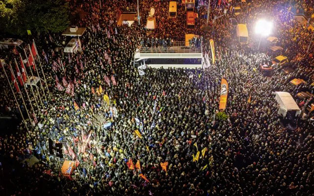 وندد حزب الشعب الجمهوري حزب المعارضة الرئيسي في البرلمان بتوقيف إمام أوغلو باعتباره "انقلابا" سياسيا، وقال أوزيل إن جريمته الوحيدة هي "تصدر استطلاعات الرأي".