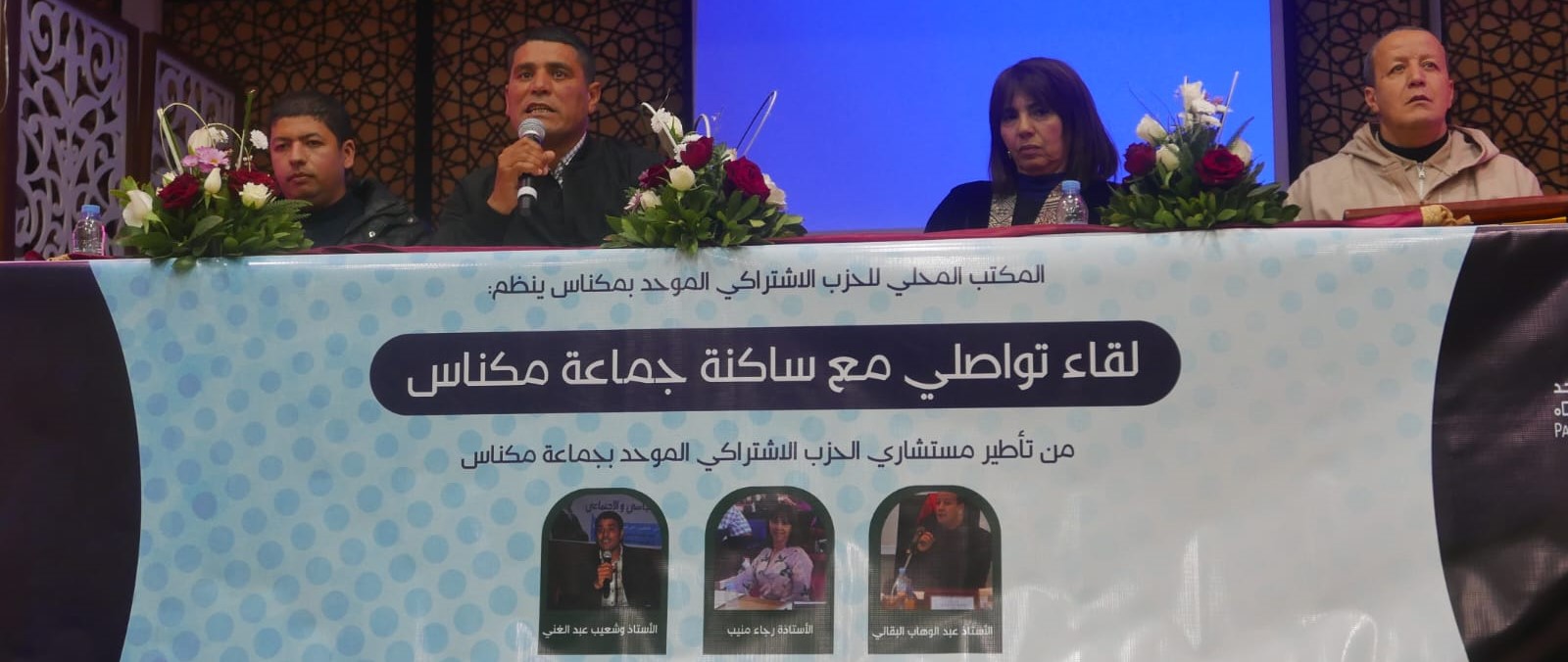 نظم الحزب الاشتراكي الموحد لقاء تواصليا مع ساكنة جماعة مكناس من تأطير مستشاري الحزب بتاريخ 23 مارس 2025 بالمعهد الموسيقي. اللقاء شكل فرصة لمستشاري الحزب الاشتراكي الموحد لإبراز مواقفهم من الأغلبية الحالية برئاسة عباس المغاري، وتسليط الضوء على جملة من القضايا والملفات المؤرقة وأبرزها ملف الإنارة العمومية، والنقل الحضري، الحدائق العمومية، وتردي البنيات التحتية بالعديد من أحياء المدينة، الى جانب الاختلالات التي تشوب تدبير الشأن المحلي والتي كانت موضوع تقرير مفصل من طرف المفتشية العامة لإدارة الترابية . في بداية اللقاء أشار الكاتب المحلي للاشتراكي الموحد بمكناس أن نصف الولاية الانتخابية عرفت اعتماد " سياسة البلوكاج " من طرف الأغلبية السابقة الى أن تمكنوا من الإطاحة بالرئيس السابق جواد باحجي المنتمي للتجمع الوطني للأحرار والذي كانوا قد اجمعوا على انتخابه وتعويضه بنائبه الأول عباس الومغاري ( الاتحاد الدستوري) بأغلبية ضعيفة، مضيفا بأن الكل يجمع بأن مكناس بلغت درجة الحضيض فيما يتعلق بالتنمية، لدرجة أن الجماعة الترابية أصبحت عاجزة عن توفير أبسك الخدمات للمواطنين من نقل حضري وإنارة عمومية، السير والجولان والمناطق الخضراء، معتبرا أن ما تعانيه مكناس هو نتيجة لقرارت مركزية كانت مجحفة في حق الساكنة، داعيا الأحزاب السياسية والنقابات والمنظمات المدنية الى تشكيل جبهة شعبية للترافع والاحتجاج من أجل رفع التهميش عن المدينة والدفاع عن مصالح ساكنتها، كما طالب في مداخلته بإعادة النظر في التقسيم الإداري والجهوي معتبرا قرار إلحاق مكناس عاصمة المنطقة الوسطى الجنوبية سابقا بجهة أخرى عاصمتها فاس كان خطأ فادحا حيث تبين بعد سنوات أن الجهة وخلافا لما تم ترويجه أن الجهة تضم قطبين، تضم فقط قطبا واحدا مهيمنا على معظم المشاريع التنموية بالجهة مرجعا السبب الى عجز النخب المكناسية عن الترافع على مصالح المدينة .