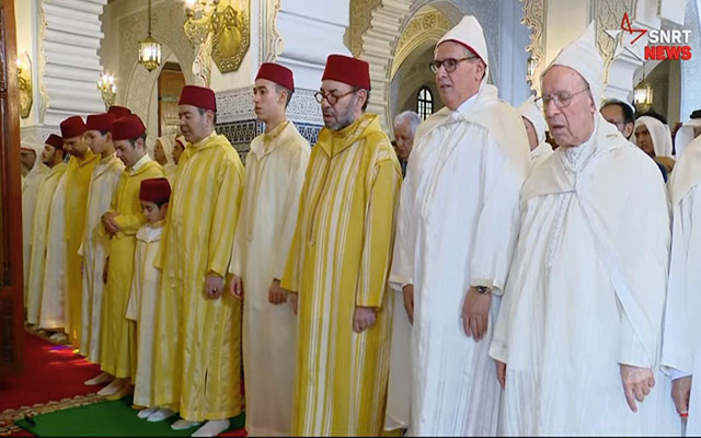 أدى أمير المؤمنين الملك محمد السادس، مرفوقا بولي العهد الأمير مولاي الحسن، والأمير مولاي رشيد، والأمير مولاي أحمد، والأمير مولاي اسماعيل، يوم الاثنين 31 مارس 2025، صلاة عيد الفطر بمسجد أهل فاس بالمشور السعيد بالرباط، وتقبل الملك التهاني بهذه المناسبة .