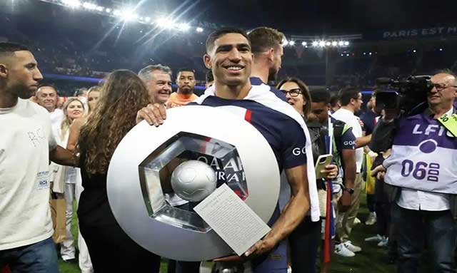 فاز النجم المغربي عميد المنتخب الوطني أشرف حكيمي باللقب الرابع على التوالي، رفقة فريقه باريس سان جيرمان بعد، بعد الفوز على الفريق الزائر أونجي، بهدف لصفر، سجله المهاجم الفرنسي الشاب ديزيري دووي في الدقيقة 55، في المباراة التي جرت برسم الدورة 28 من بطولة الليغ1 الفرنسية.
