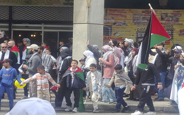 وفي أيديهم علمُ فلسطين،
