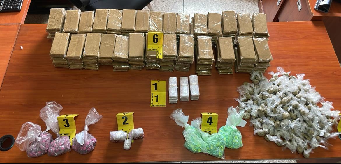 وقد جرى توقيف المشتبه فيهما على متن سيارة أجرة من الصنف الأول بأحد المحاور الطرقية بوسط مدينة مراكش، حيث أسفرت عملية التفتيش عن العثور بحوزتهما على 1150 قرص إكستازي مخدر، علاوة على 192 غرام من مخدر الكوكايين و26 كيلوغرام و618 غرام من صفائح مخدر الشيرا و992 غرام من مسحوق الكيف.