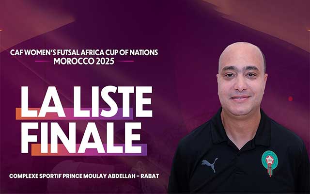أعلن مدرب المنتخب الوطني النسوي لكرة القدم داخل القاعة، عادل سايح، عن قائمة 14 لاعبة للمشاركة في النسخة الأولى لنهائيات كأس إفريقيا للأمم لكرة القدم داخل القاعة – سيدات، المغرب 2025، التي ستنظم من 22 إلى 30 أبريل 2025 بقاعة المجمع الرياضي الأمير مولاي عبد الله بمدينة الرباط.