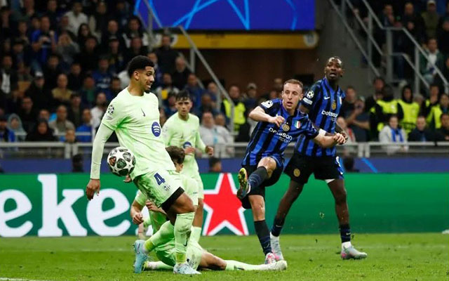 قلب انتر الايطالي تأخره من 3-2 قبل لحظات من نهاية الوقت الاصلي الى فوز 4-3 على ضيفه برشلونة الإسباني بعد التمديد يوم الثلاثاء 6 ماي 2025، ليتأهل الى نهائي دوري أبطال أوروبا لكرة القدم، بعد تعادل الفريقين 3-3 ذهابا.