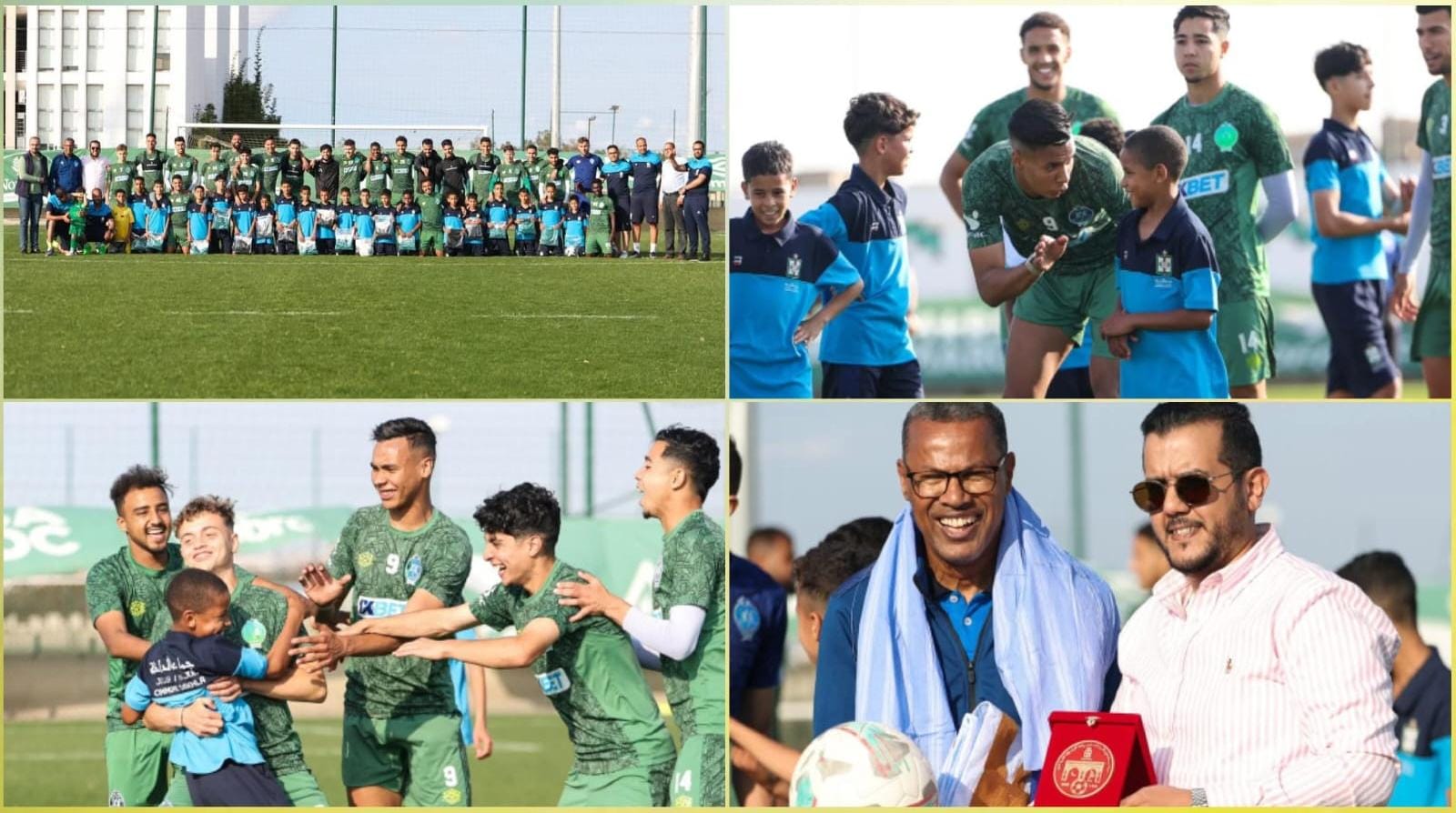 أكاديمية الرجاء تستقبل بعثة رياضية من مدينة الداخلة اختتمت هذه المبادرة بتوزيع هدايا تذكارية تحمل شعار نادي الرجاء الرياضي على أعضاء الفريق الضيف