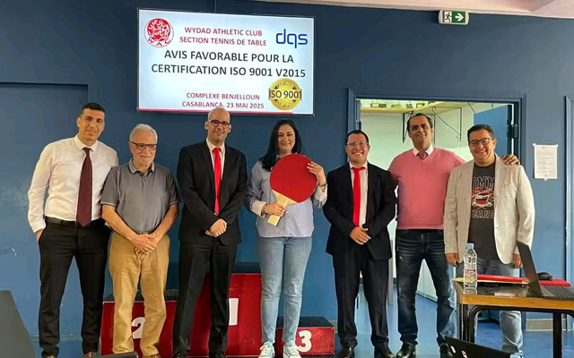 واعلن فرع كرة الطاولة لنادي الوداد الرياضي يوم الجمعة 23 ماي 2025 حصوله الرسمي على شهادة ISO 9001 المتعلقة بنظام إدارة جودته أنشطته في تكوين وتأطير اللاعبين.