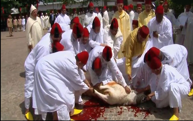 وأضاف أن الملك ، سيقوم بذبح الأضحية نيابة عن شعبه الوفي وسيرا على سنة جده المصطفى عليه أفضل الصلاة وأزكى السلام، عندما ذبح كبشين وقال: "هذا لنفسي وهذا عن أمتي".