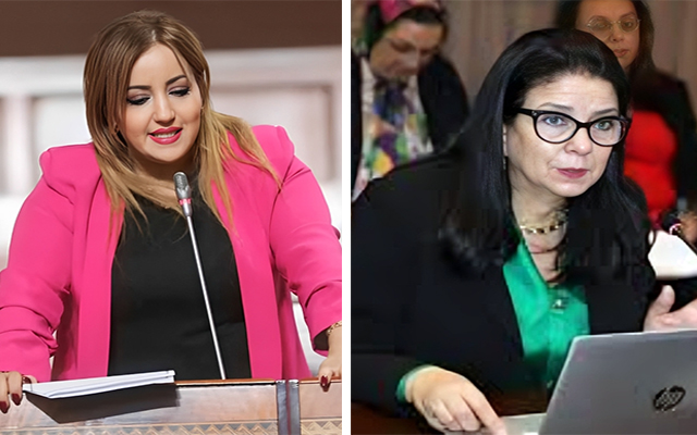 أمل الفلاح السغروشني، وزيرة الانتقال الرقمي وإصلاح الإدارة (يمينا) وخديجة اورهال، نائبة برلمانية عن حزب التقدم والاشتراكية