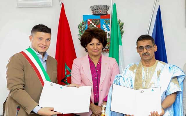 نزهة بدوان تتوسط الموقعين على بروتوكول اتفاقية صداقة وتعاون بين جماعتي مدينة طوانو الإيطالية وأسا المغربية