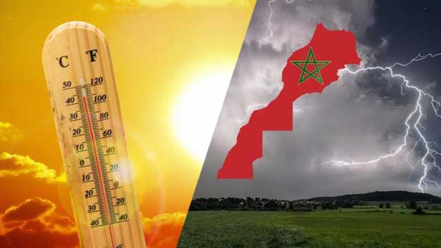 كما تتوقع المديرية تسجيل درجات حرارة، من الثلاثاء إلى الخميس، تتراوح بين 40 و44 درجة، بعمالات وأقاليم بني ملال، والفقيه بن صالح، ومكناس، وخنيفرة، وفاس، ومولاي يعقوب، وتاونات، وتازة، ووزان، وكلميم، وأكادير إدا أو تنان، وإنزكان-أيت ملول، وسيدي قاسم، وسيدي سليمان، وبنسليمان، وخريبكة، وسطات، وشيشاوة، وقلعة السراغنة، والصويرة، ومراكش، والرحامنة، والخميسات، وسيدي بنور، واليوسفية.