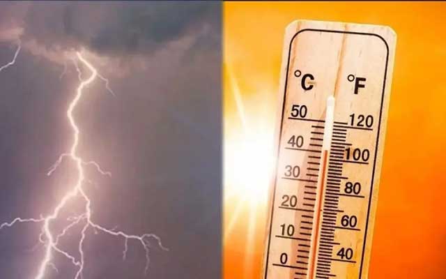 كما تتوقع المديرية تسجيل درجات حرارة تتراوح بين 40 و44 درجة من الثلاثاء 5 غشت 2025 إلى الأربعاء 6 غشت 2025 بأقاليم الرحامنة وقلعة السراغنة ومراكش وزاكورة وتارودانت وتاونات وتازة ومولاي يعقوب ومكناس وفاس والفقيه بن صالح وبني ملال.