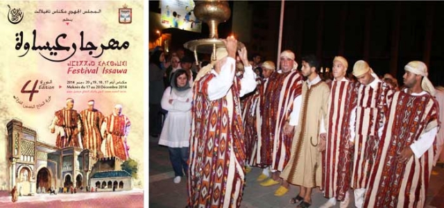 وتقدم الطبعة الرابعة من مهرجان عيساوة، التي ينظمها المجلس الجهوي مكناس تافيلالت بتعاون مع جمعية مكناس للثقافة والتنمية، فرجة فنية غنية متنوعة بين اللون العيساوي والفن العصري، حيث يلتقي الجمهور المكناسي في افتتاح هذه التظاهرة مساء يوم الأربعاء 17 من الشهر الجاري مع كرنفال شعبي تشارك فيه عدة طوائف عيساوية وضمنه لوحات عدة من الفن العيساوي، سينطلق من مقر المعرض الجهوي لمكناس مرورا بشارع مولاي اسماعيل ومدار المسيرة وباب بوعماير وشارع روامزين وظهر السمن ووصولا بساحة الهديم، حيث سينتهي الكرنفال... دون إغفال ندوة فكرية ستعقد أشغالها بقاعة الندوات بمقر جهة مكناس تافيلالت حول موضوع "التصوف والتسامح".