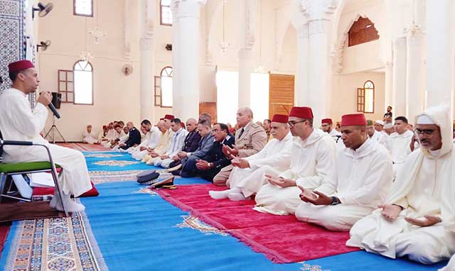 وقد حضر هذا الحفل الديني الذي نظم بتنسيق مع المندوبية الجهوية للشؤون الإسلامية، عدد من الشخصيات المدنية والعسكرية، إلى جانب منتخبين، وأئمة، ووعاظ، وممثلي المصالح الخارجية، وأفراد من المجتمع المدني، وجموع من المصلين من مختلف أحياء المدينة.