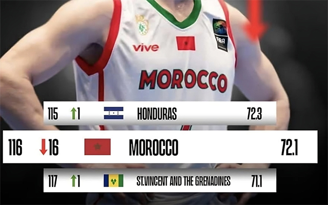 فقد سجل التصنيف العالمي الصادر عن الاتحاد الدولي لكرة السلة “فيبا”، تراجع المنتخب المغربي إلى المرتبة 116 عالميا، إلى جانب دول مجهولة على غرار سانت فانسنت وغرونادين..